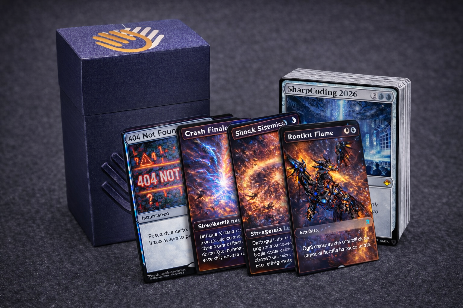 4 Carte Rare oltre a Mazzo Base SharpCoding 2026 con Scatola porta Carte